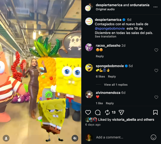 Critically, they supported the films collaboration with Burger King, by having a presence at the Miami Burger King pop-up over a two day period. Thousands of fans of SpongeBob and Patrick had the opportunity to meet the characters in person and try the new Burger King SpongeBob Squarepants Movie Meal. Influencers supplemented the pop-up, sharing the experience on their socials, and contributing the overall 9.3 million in reach the campaign garnered.