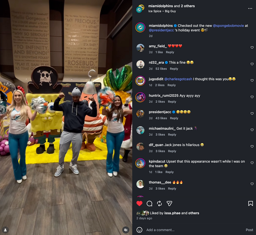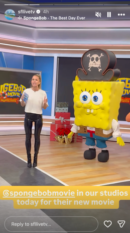 SpongeBob and Patrick took a break from Bikini Bottom to visit Miami, where they participated in a media day at local CBS, NBC, and Telemundo stations. Their appearances ran on Univision's Despierta America, La Voz de la Manana, En Casa con Telemundo, Revoltillo Digital, and South Florida Live. They stopped by two screenings while in town, an advance screening hosted by on-air personality Alan Tacher, of Univison's Despierta America, and another for the Miami Dolphins charity foundation with star player Jack Jones.